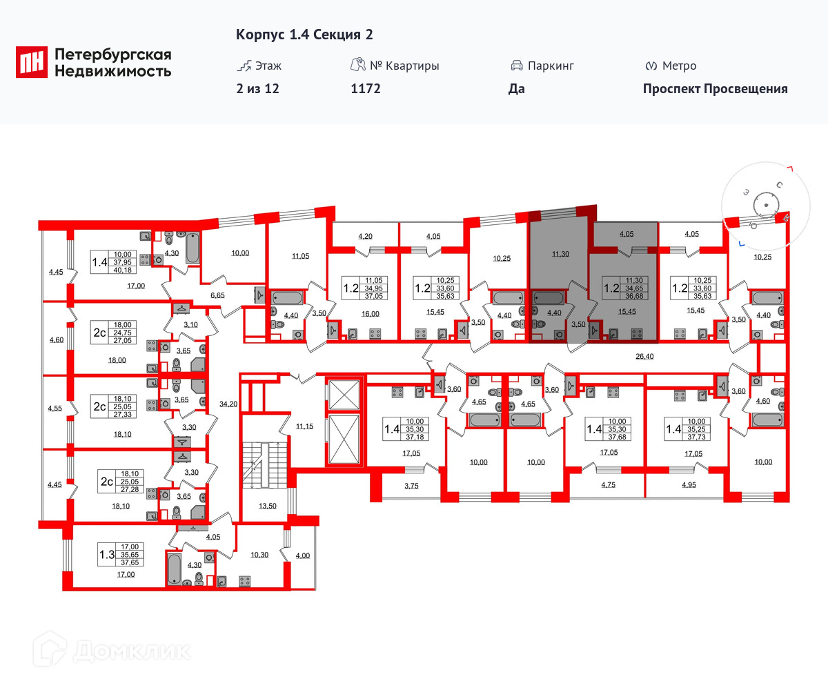 Площади квартир