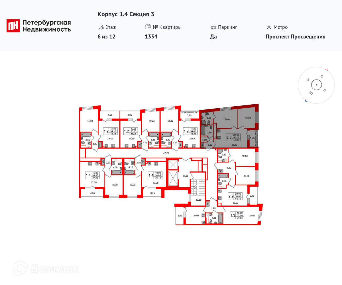 Площади квартир