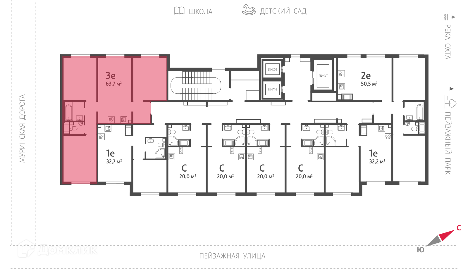 - Общая площадь: 63.7 м²