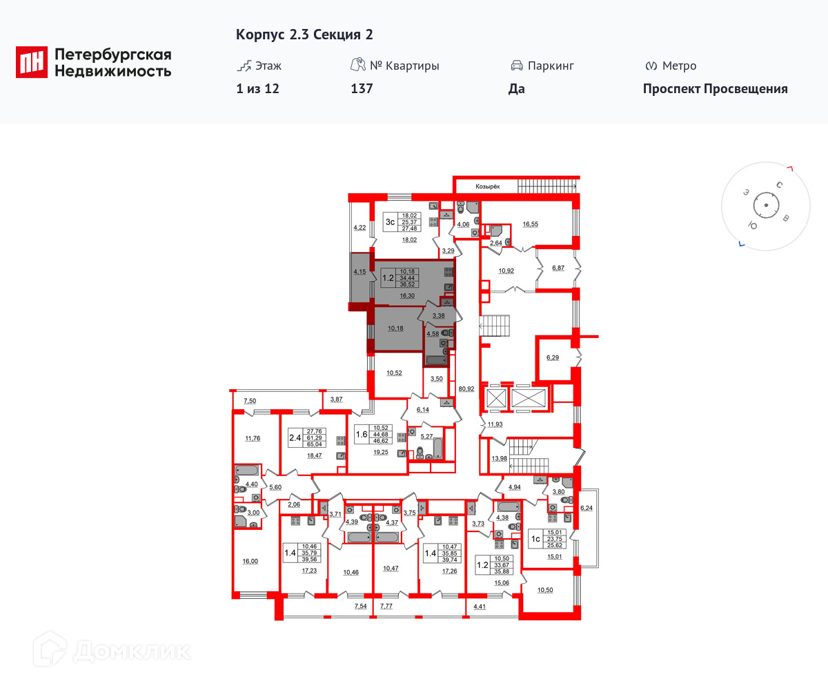 Площади квартир