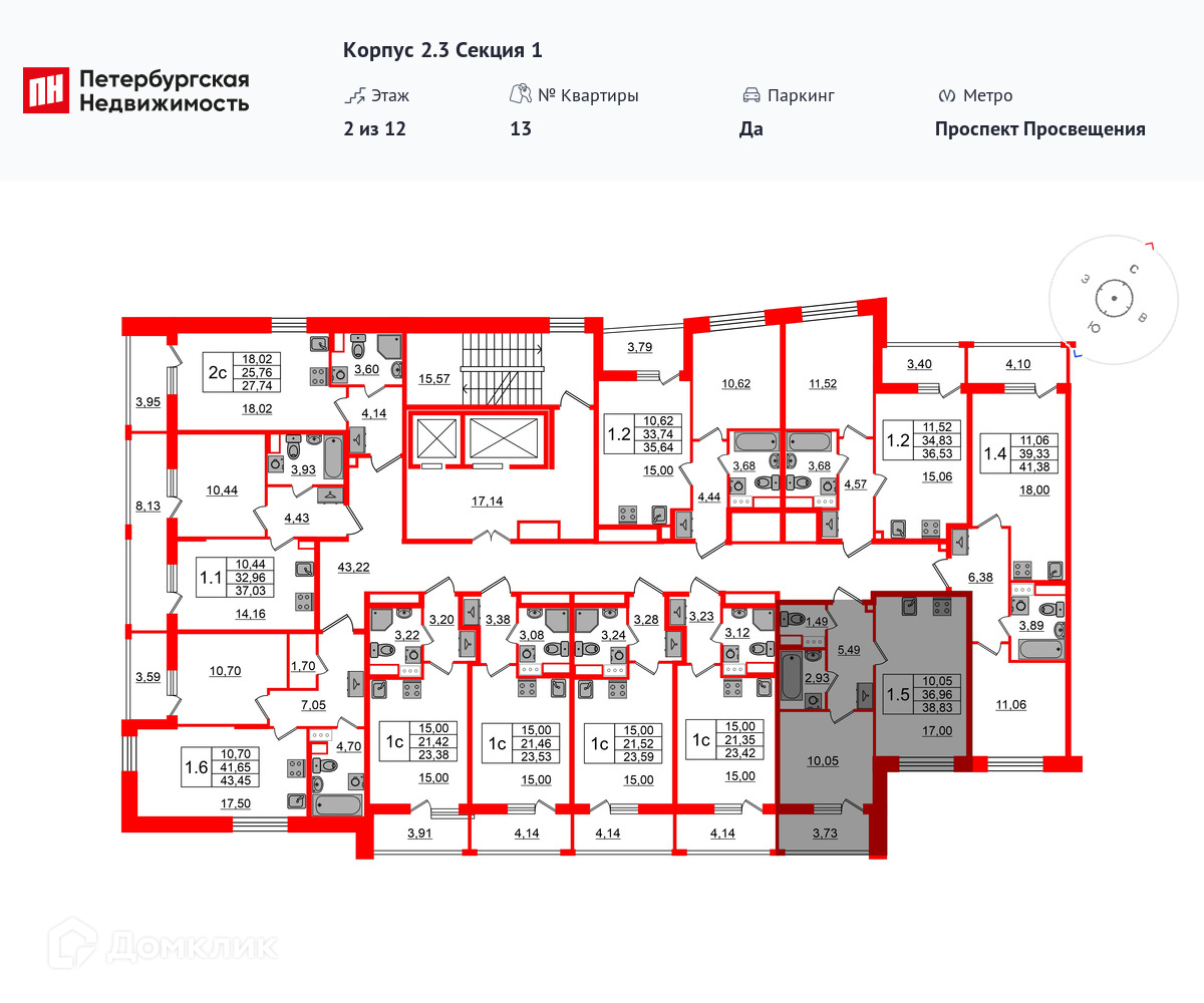 Площади квартир