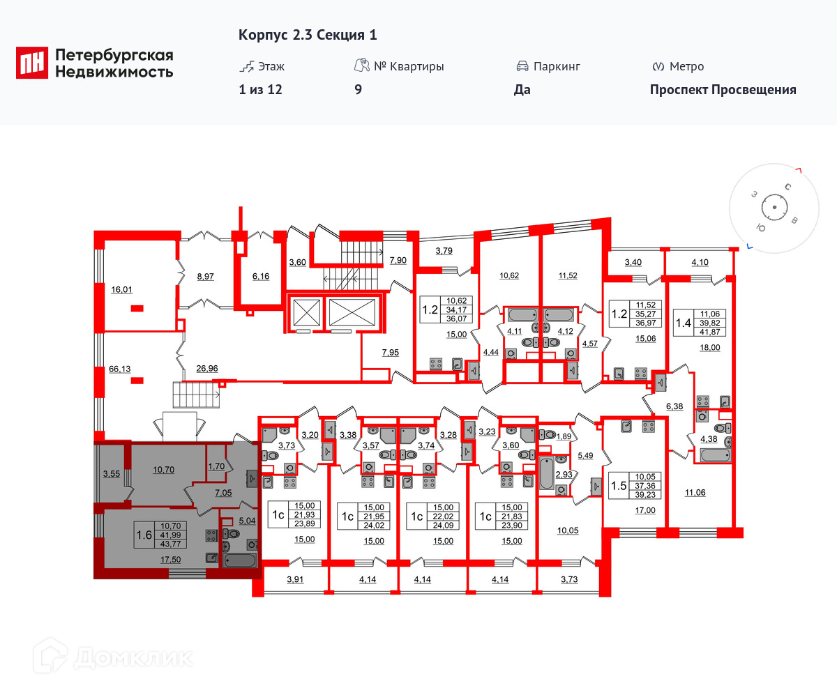 Площади квартир