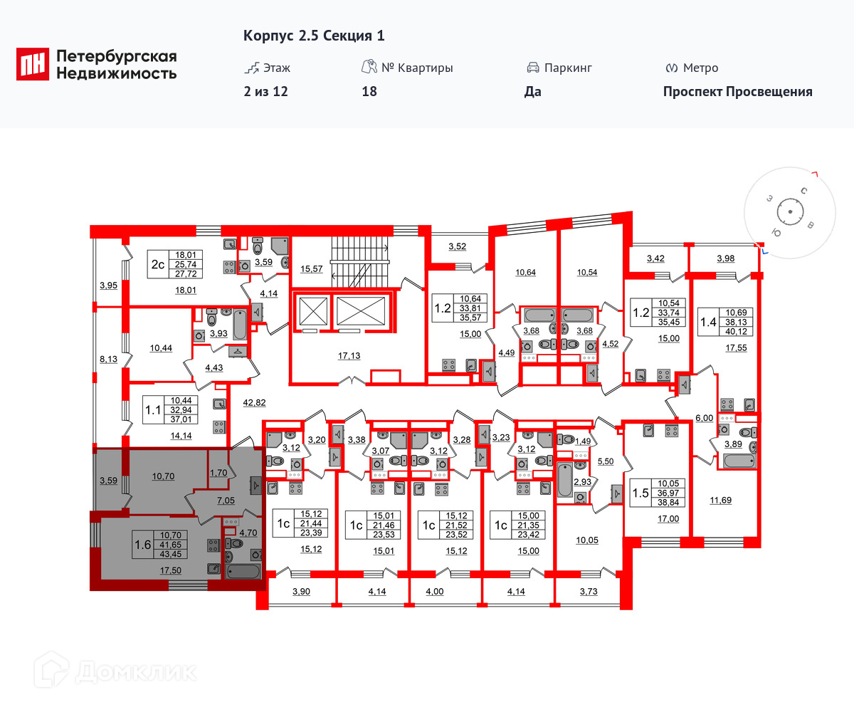 Площади квартир