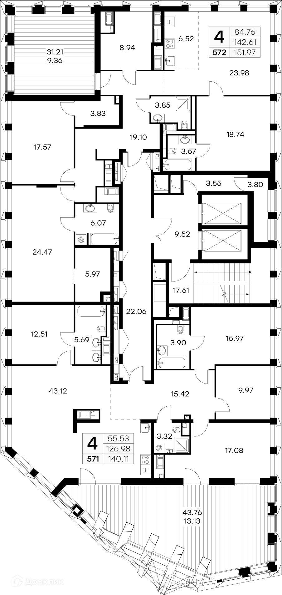 Площади квартир