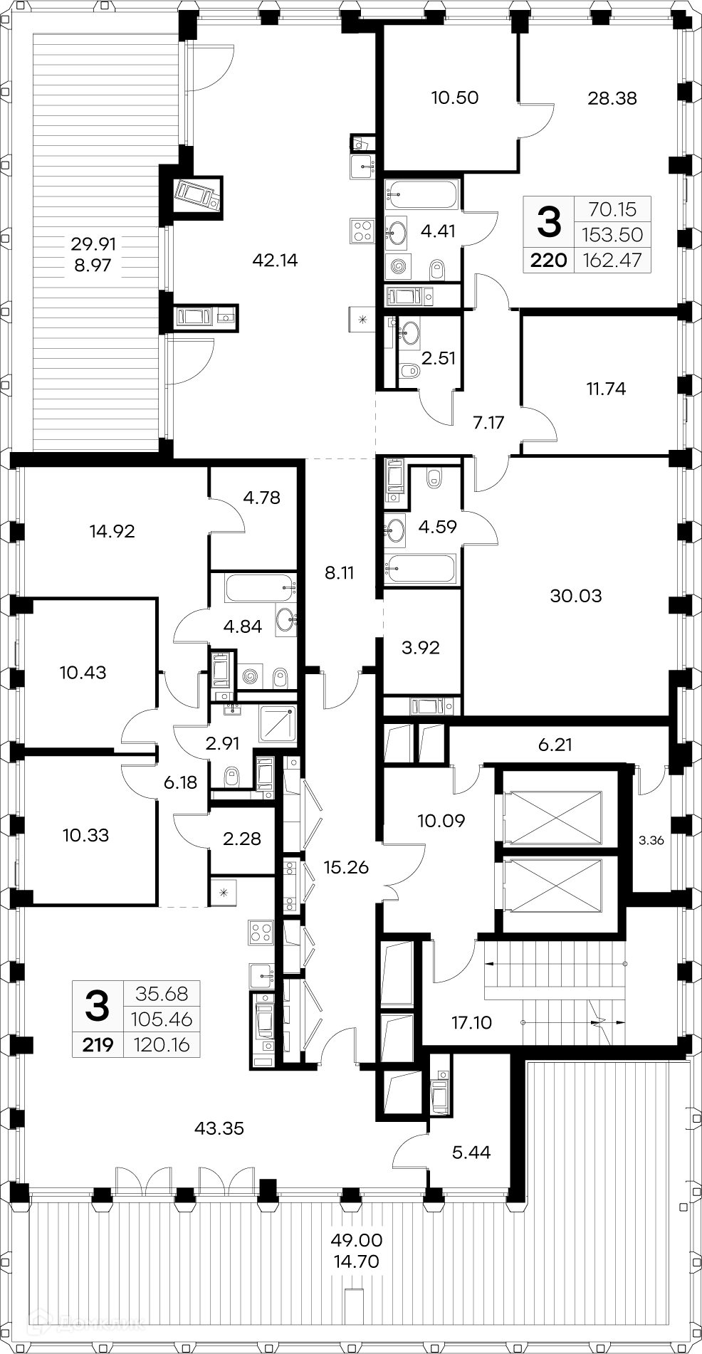 Площади квартир
