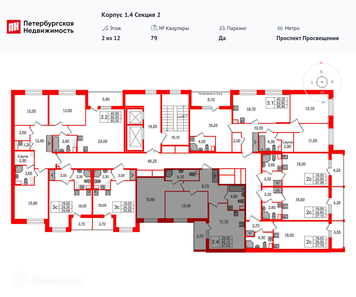 Площади квартир