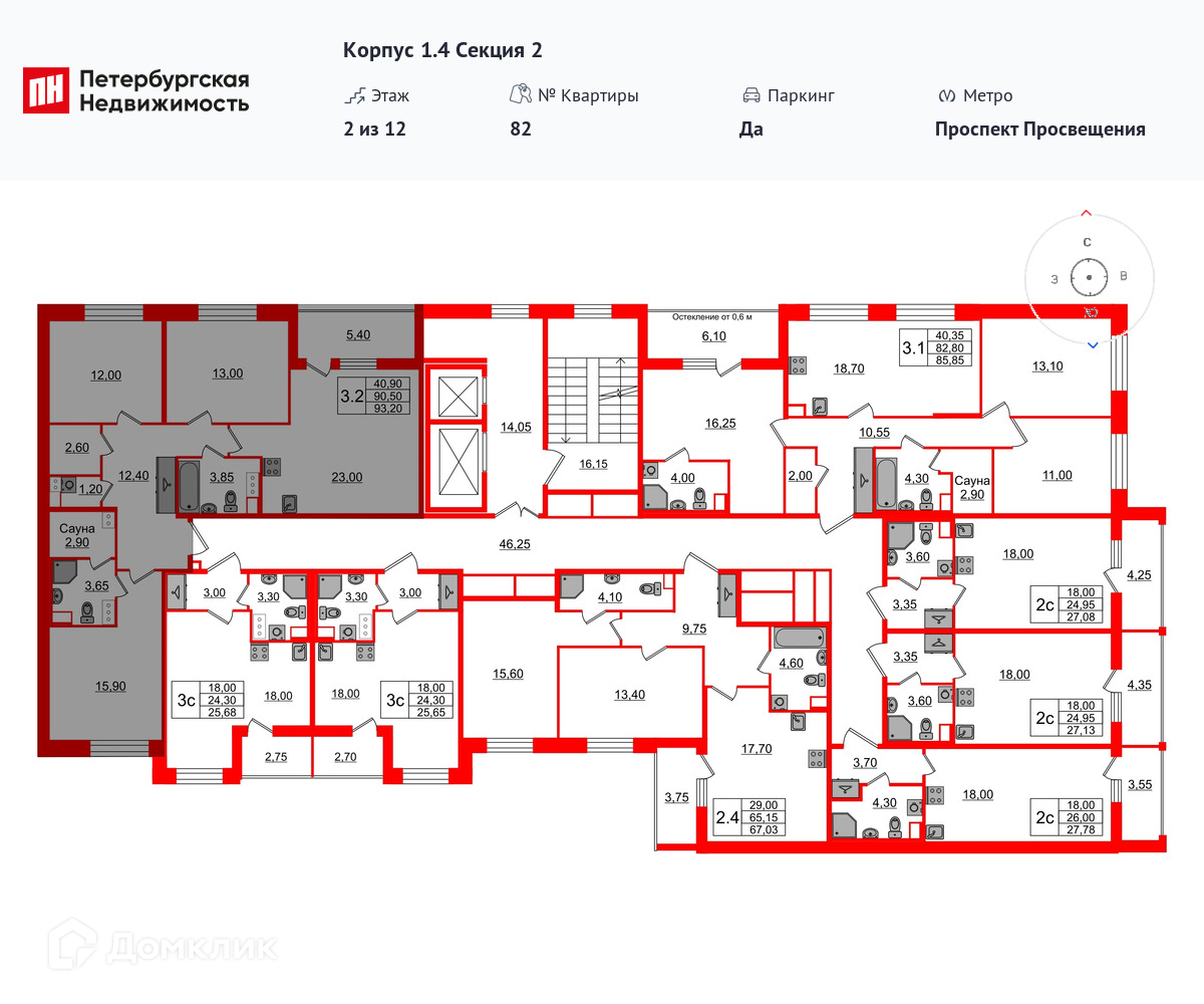 Площади квартир