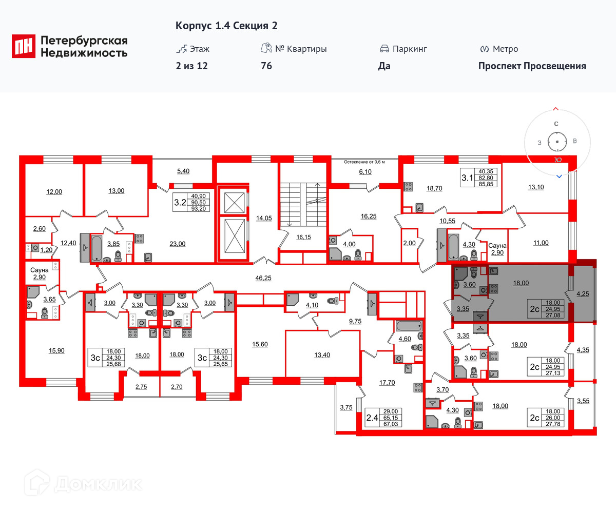 Площади квартир