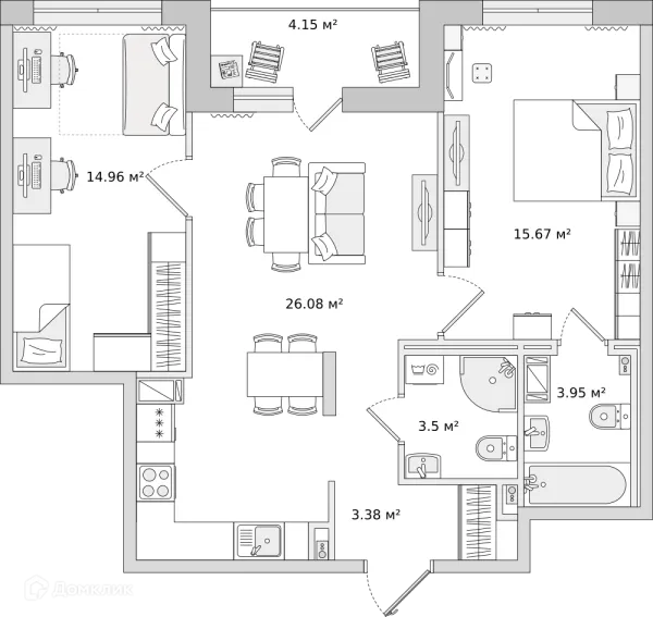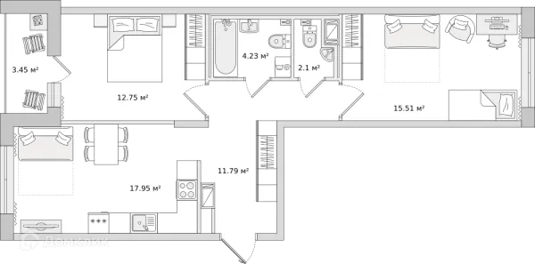 3 комн. квартира в Санкт-Петербурге в ипотеку от 243 390 руб/месяц