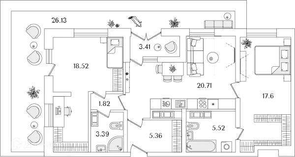 3 комн. квартира в Санкт-Петербурге в ипотеку от 149 122 руб/месяц