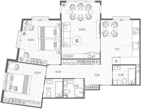 3 комн. квартира в Санкт-Петербурге в ипотеку от 370 068 руб/месяц