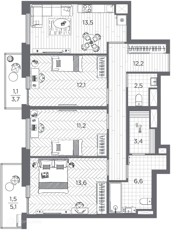 3 комн. квартира в Санкт-Петербурге в ипотеку от 123 475 руб/месяц