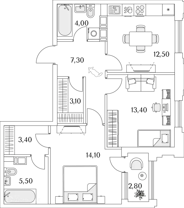 2 комн. квартира в Санкт-Петербурге в ипотеку от 122 692 руб/месяц