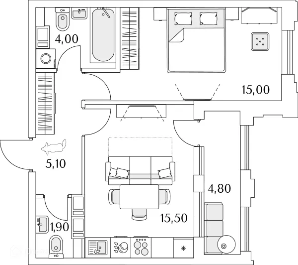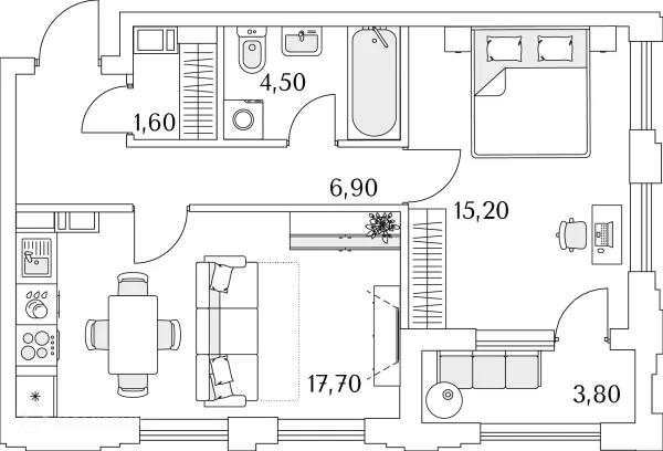 1 комн. квартира в Санкт-Петербурге в ипотеку от 91 570 руб/месяц
