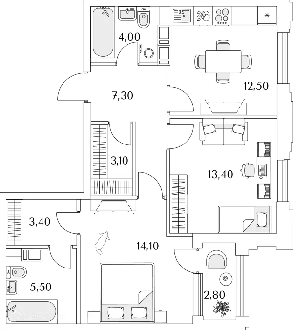 2 комн. квартира в Санкт-Петербурге в ипотеку от 116 754 руб/месяц