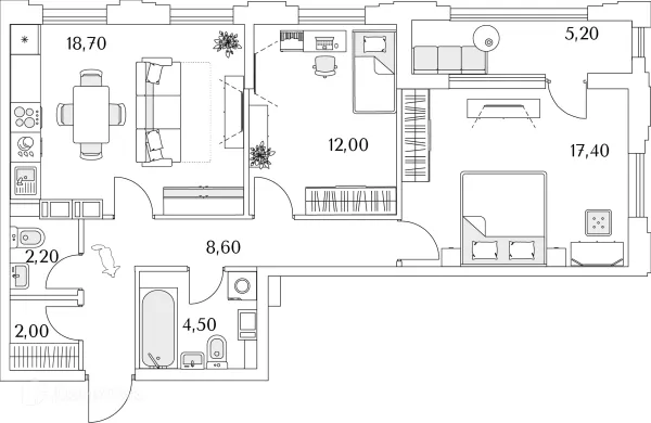 3 комн. квартира в Санкт-Петербурге в ипотеку от 196 713 руб/месяц