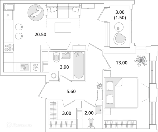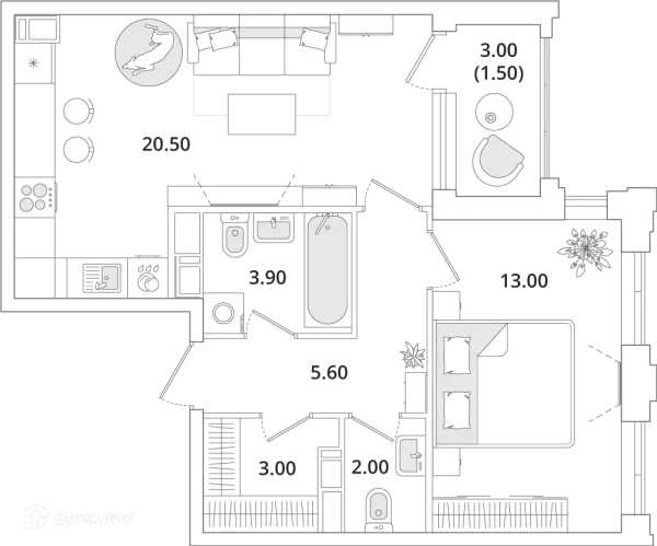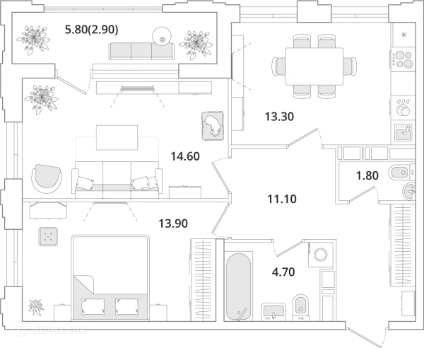 2 комн. квартира в Санкт-Петербурге в ипотеку от 104 378 руб/месяц