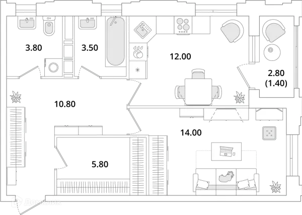 2 комн. квартира в Санкт-Петербурге в ипотеку от 121 762 руб/месяц