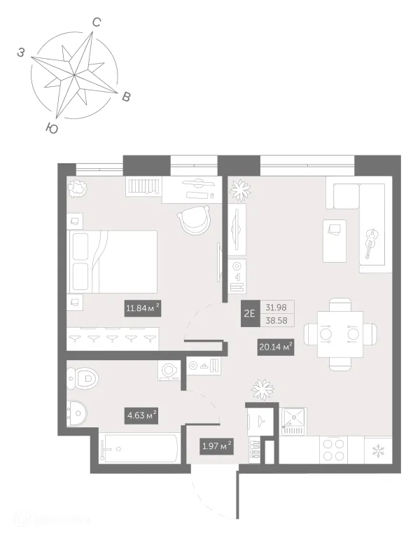 1 комн. квартира в Санкт-Петербурге в ипотеку от 56 163 руб/месяц