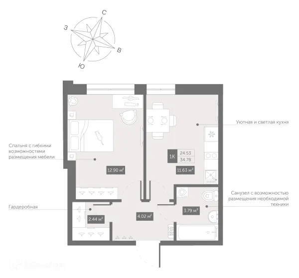 1 комн. квартира в Санкт-Петербурге в ипотеку от 77 990 руб/месяц