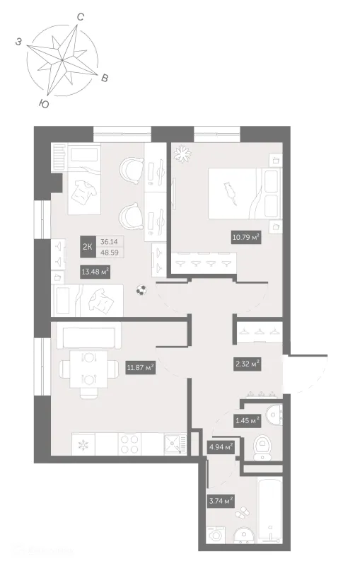 2 комн. квартира в Санкт-Петербурге в ипотеку от 73 282 руб/месяц