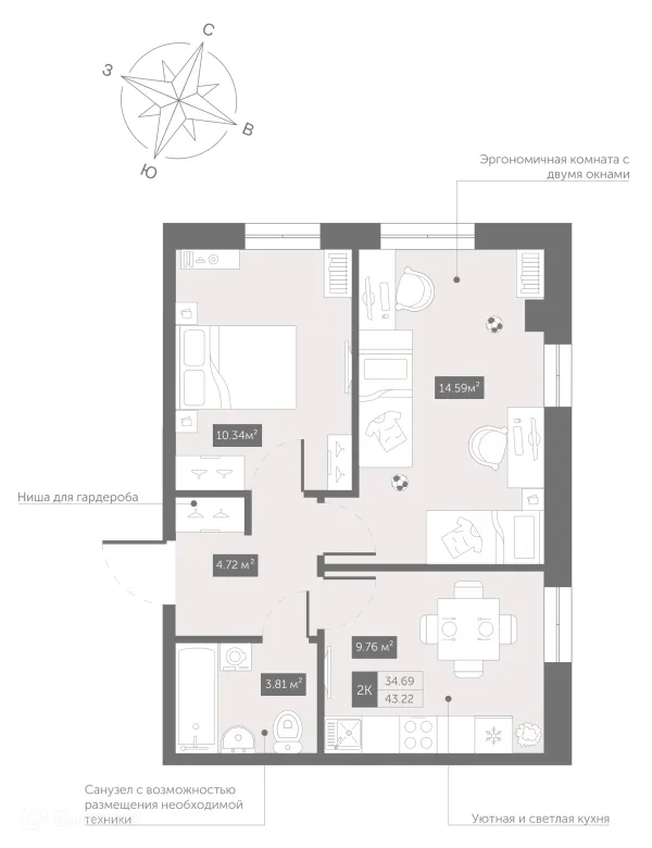 2 комн. квартира в Санкт-Петербурге в ипотеку от 70 423 руб/месяц