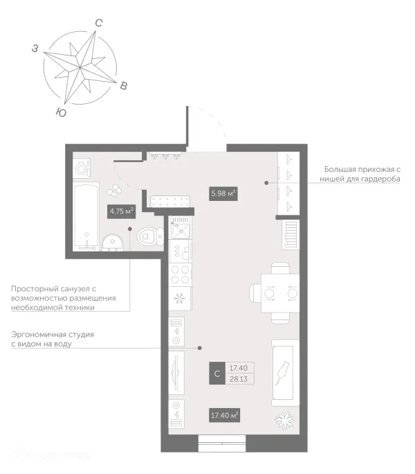 Студия квартира в Санкт-Петербурге в ипотеку от 40 192 руб/месяц