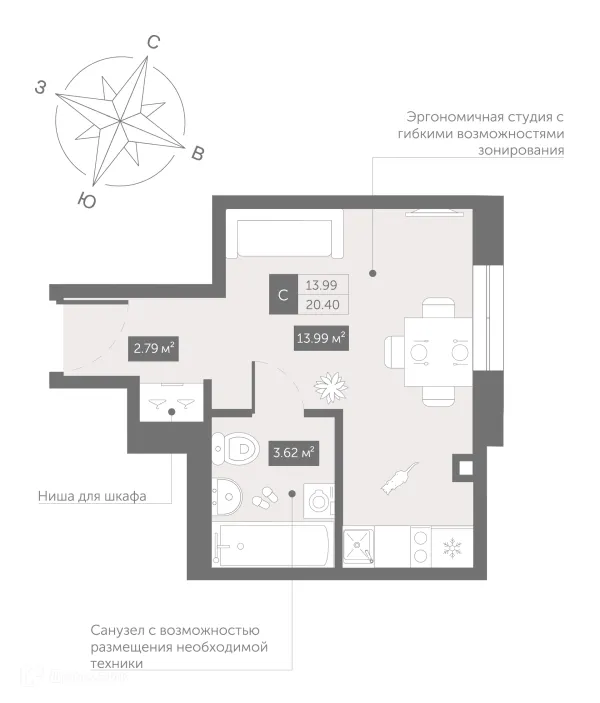 Студия квартира в Санкт-Петербурге в ипотеку от 40 073 руб/месяц