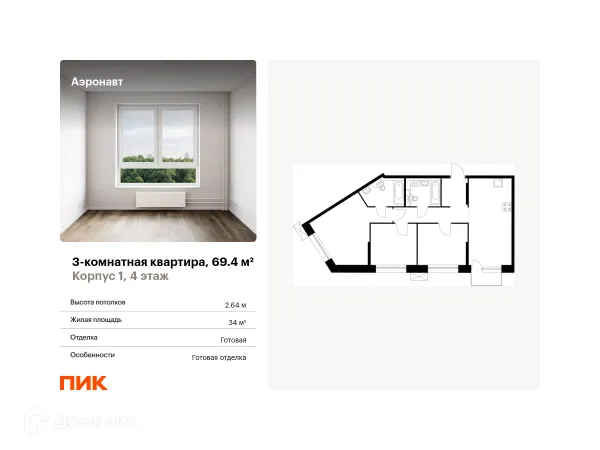 3 комн. квартира в Санкт-Петербурге в ипотеку от 180 854 руб/месяц