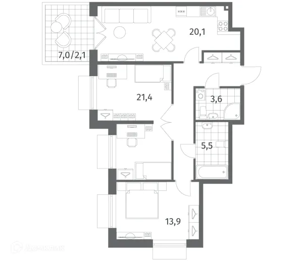 3 комн. квартира в Санкт-Петербурге в ипотеку от 176 309 руб/месяц