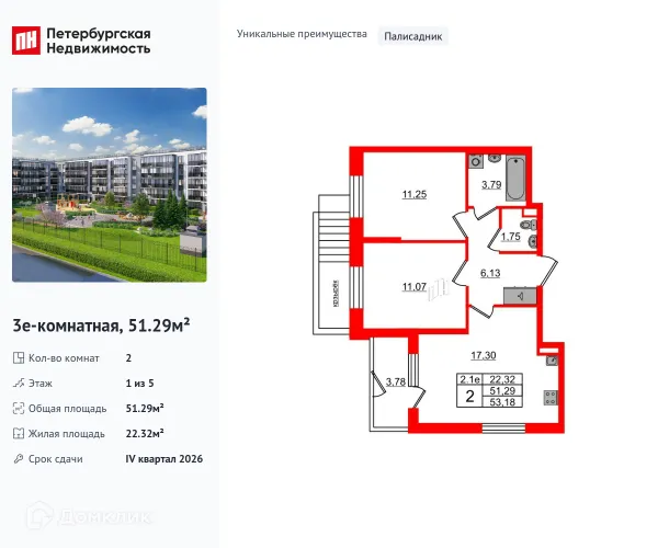 2 комн. квартира в Санкт-Петербурге в ипотеку от 63 479 руб/месяц