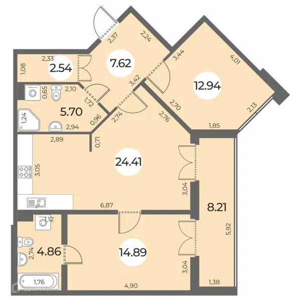 2 комн. квартира в Санкт-Петербурге в ипотеку от 62 764 руб/месяц