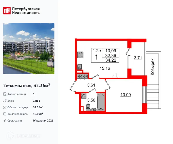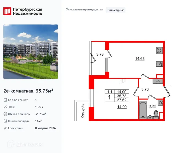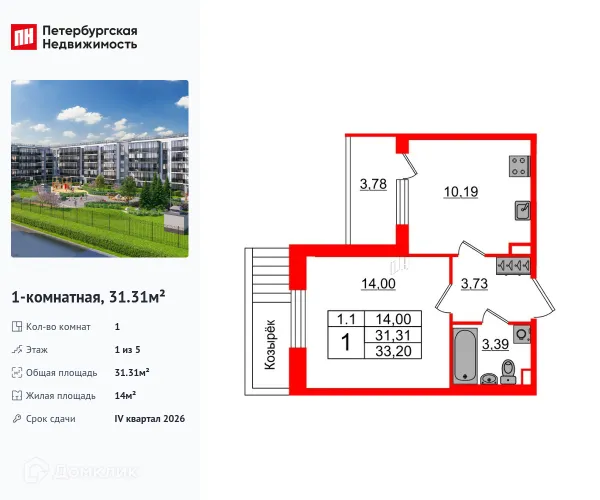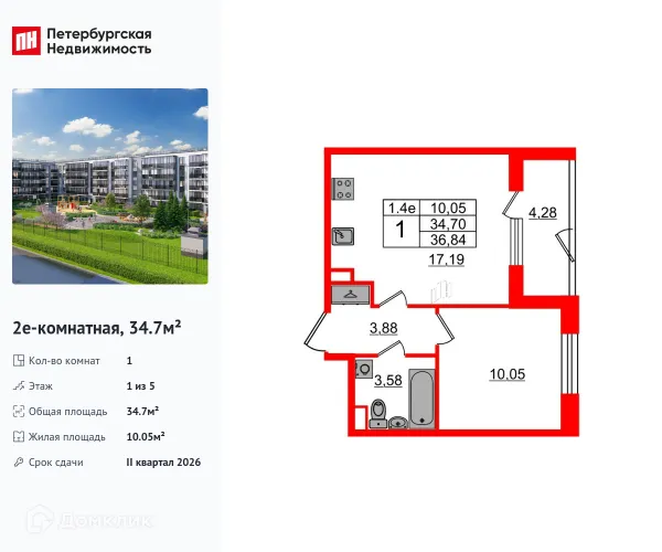 1 комн. квартира в Санкт-Петербурге в ипотеку от 47 168 руб/месяц