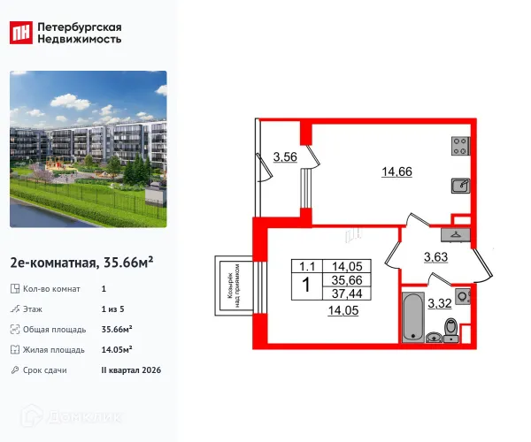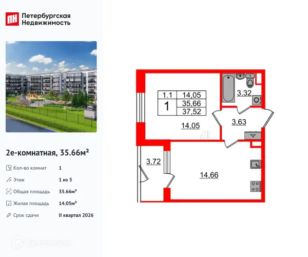 1 комн. квартира в Санкт-Петербурге в ипотеку от 52 208 руб/месяц