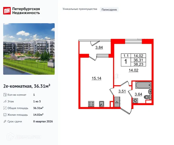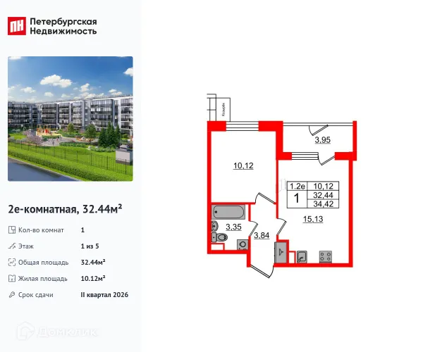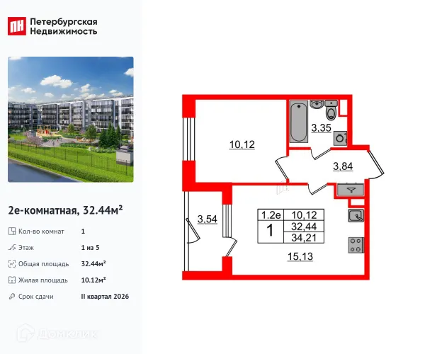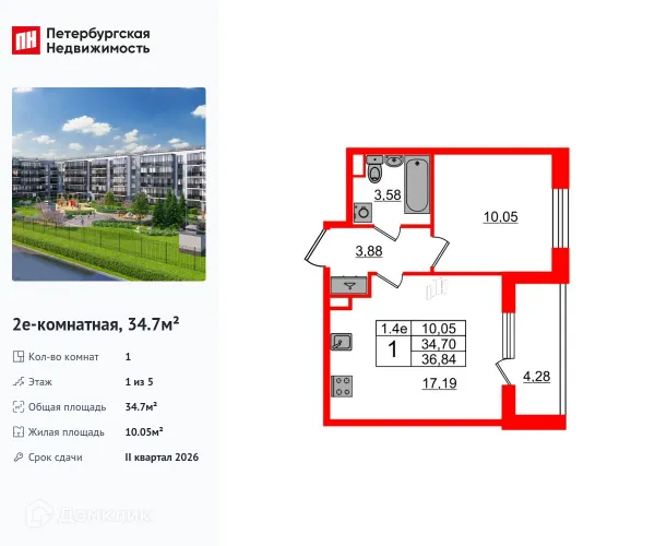 1 комн. квартира в Санкт-Петербурге в ипотеку от 55 808 руб/месяц