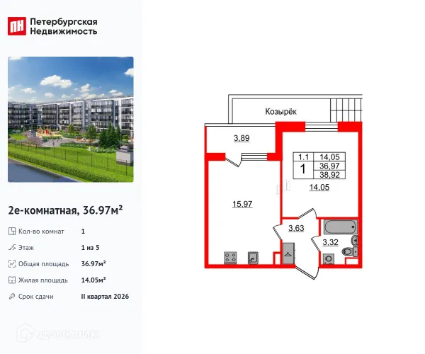 1 комн. квартира в Санкт-Петербурге в ипотеку от 55 809 руб/месяц