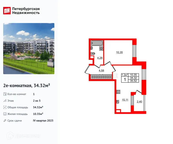 1 комн. квартира в Санкт-Петербурге в ипотеку от 57 248 руб/месяц