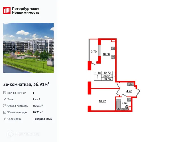 1 комн. квартира в Санкт-Петербурге в ипотеку от 42 150 руб/месяц