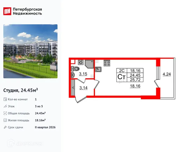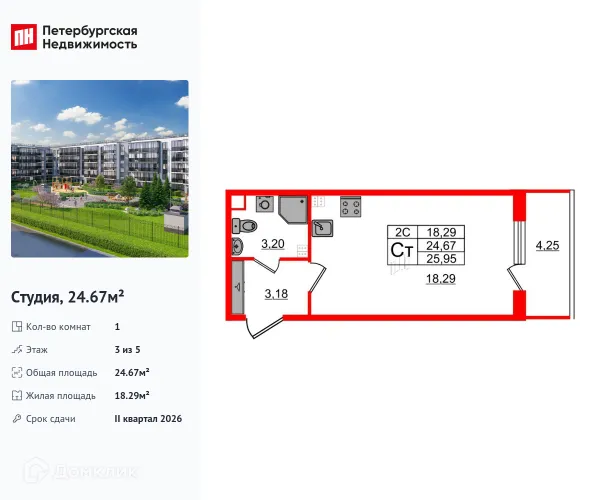 Студия квартира в Санкт-Петербурге в ипотеку от 28 799 руб/месяц