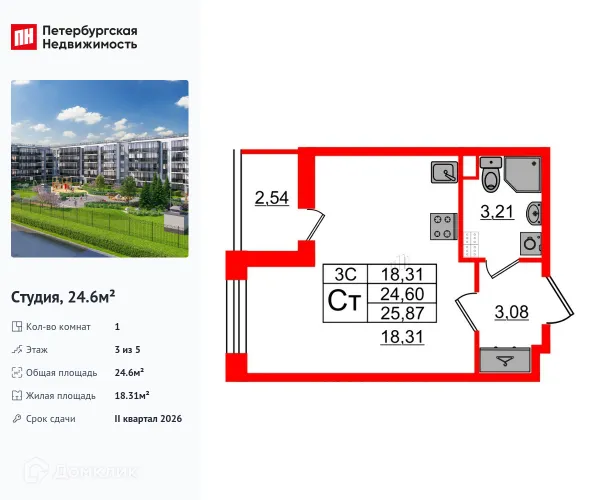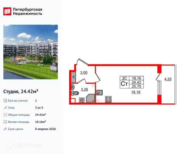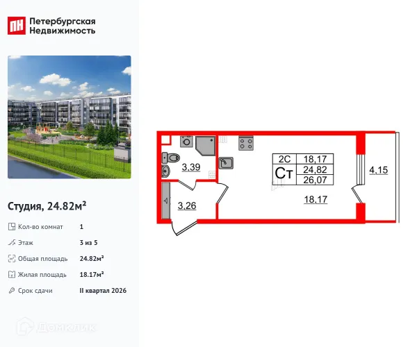 Студия квартира в Санкт-Петербурге в ипотеку от 26 223 руб/месяц