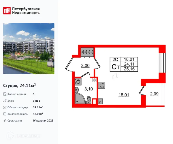 Студия квартира в Санкт-Петербурге в ипотеку от 25 709 руб/месяц