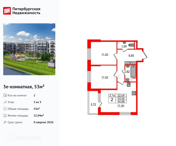 2 комн. квартира в Санкт-Петербурге в ипотеку от 95 054 руб/месяц