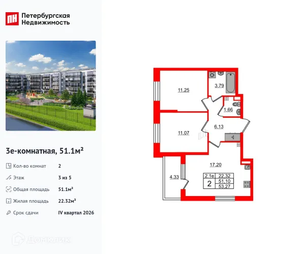 2 комн. квартира в Санкт-Петербурге в ипотеку от 91 094 руб/месяц