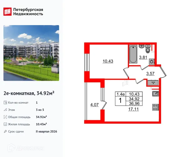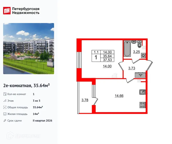 1 комн. квартира в Санкт-Петербурге в ипотеку от 74 537 руб/месяц