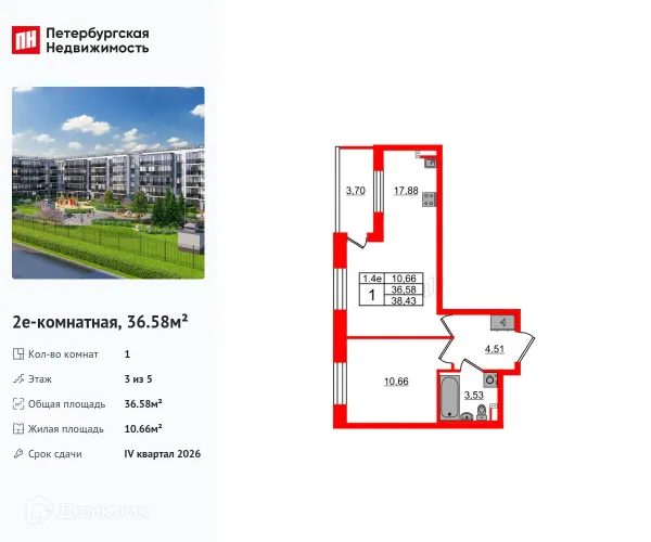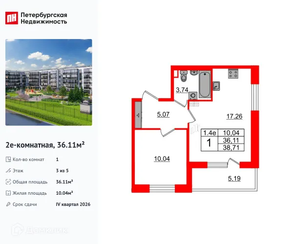1 комн. квартира в Санкт-Петербурге в ипотеку от 55 088 руб/месяц