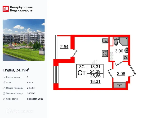Студия квартира в Санкт-Петербурге в ипотеку от 28 799 руб/месяц