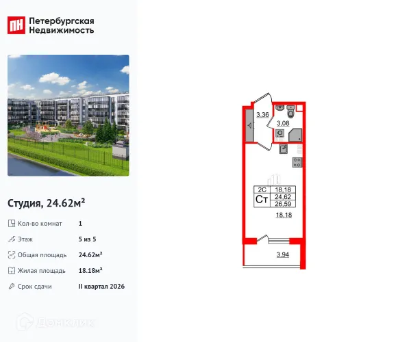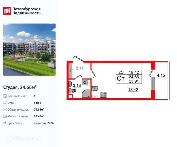Студия квартира в Санкт-Петербурге в ипотеку от 39 966 руб/месяц