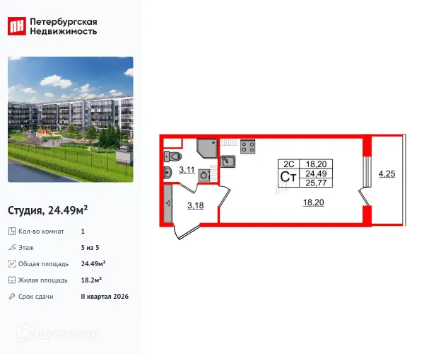 Студия квартира в Санкт-Петербурге в ипотеку от 40 325 руб/месяц