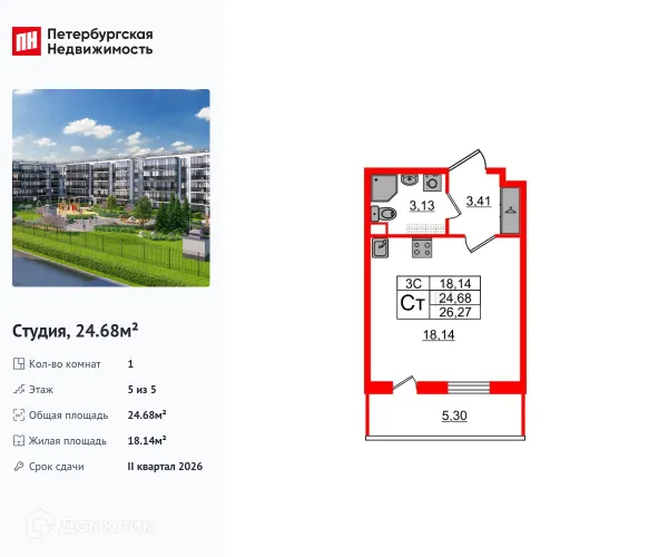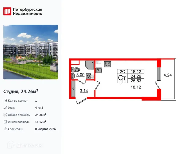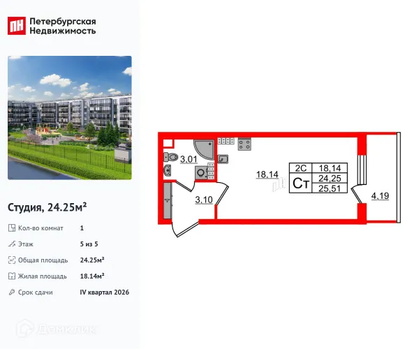 Студия квартира в Санкт-Петербурге в ипотеку от 39 967 руб/месяц