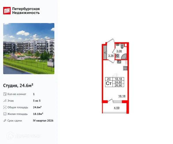 Студия квартира в Санкт-Петербурге в ипотеку от 40 326 руб/месяц